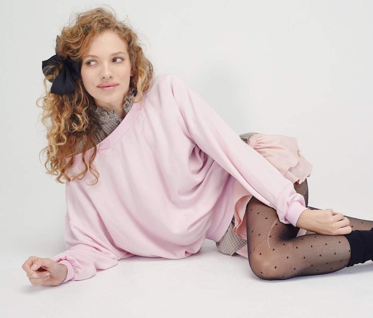 Slightly off the shoulder, this is the greatest sweatshirt to have with you at all times. Snuggly, yet still breathable & extremely soft. Sits perfectly past the hip, hugs in at the hip to show off that booty! The perfect color, strawberry froth designed by Selkie.