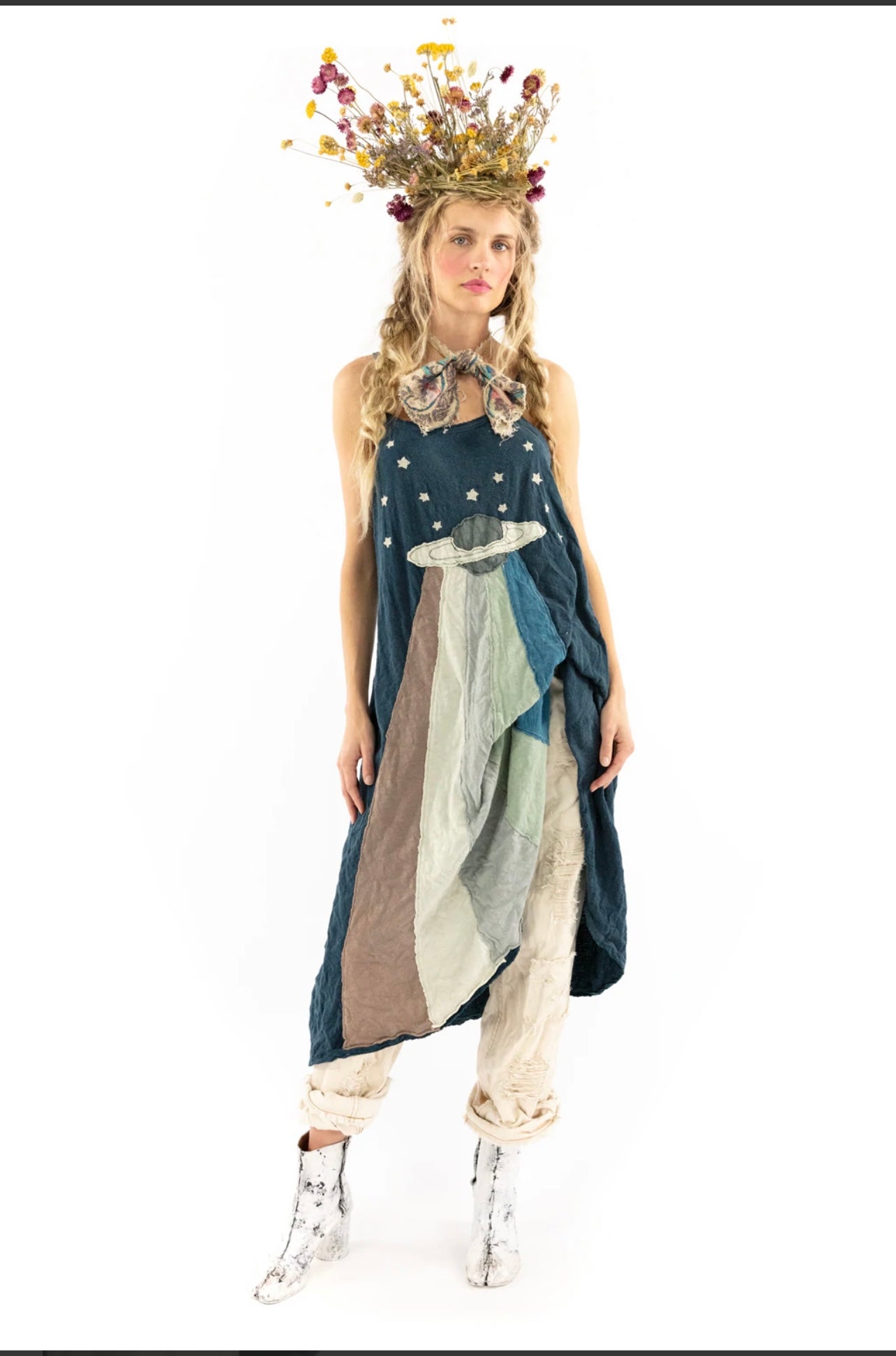Trailing beams of bent light, the cradle of space offers more than just night. Wear its generative influence in our Opalia Lana Tank Dress, the perfect slip for parading around this particular planet. Dress 798